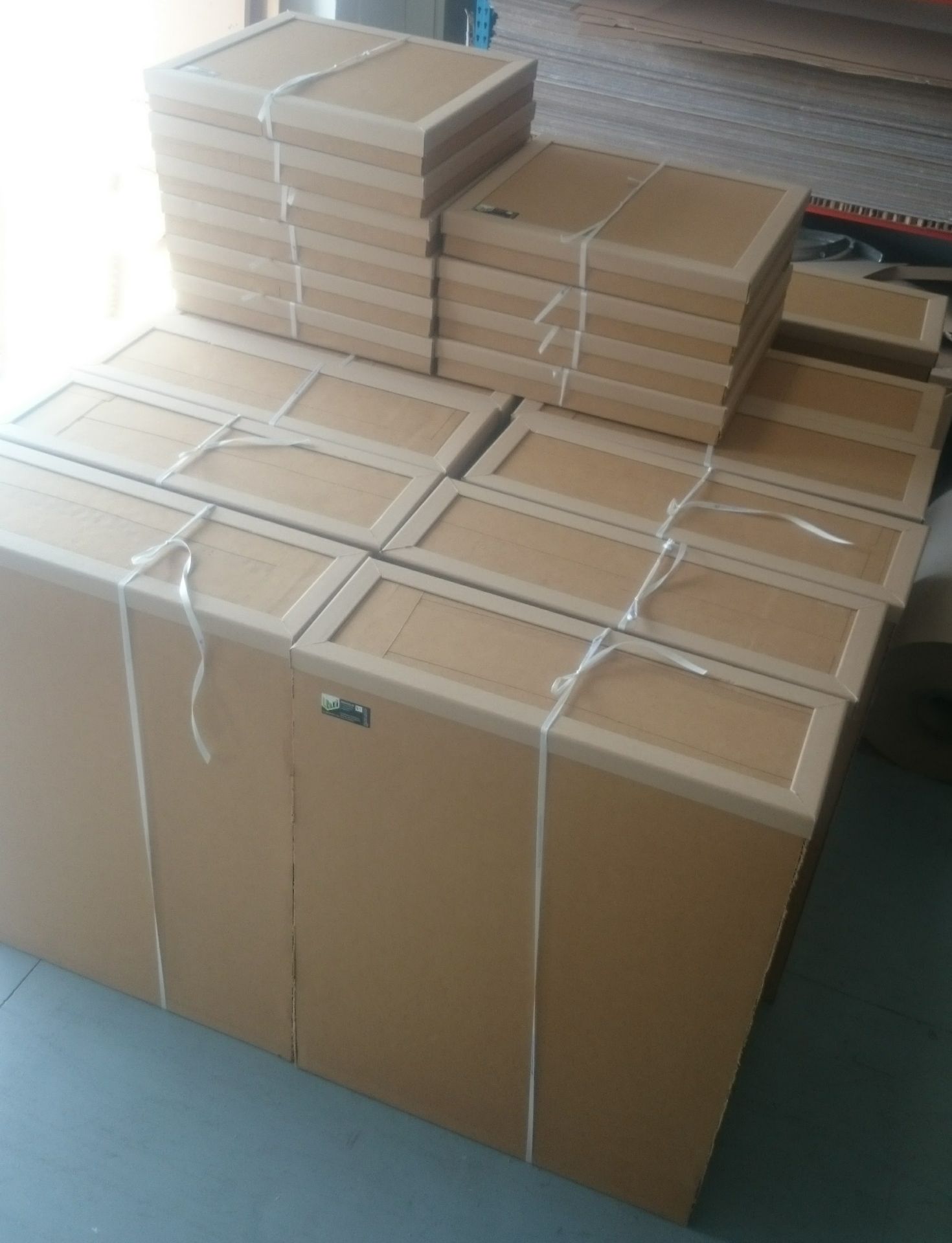 Our standard honeycomb panel size is 1000mm x 1200mm - exactly the same size as a South African pallet, making them ideal for use as a pallet base as well as pallet stacking.